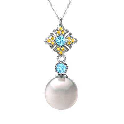 Inci, akuamarin ve sitrin 925 ayar gümüş kolye (40 cm gümüş rolo zincir)
