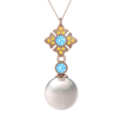Inci, akuamarin ve sitrin 925 ayar rose altın kaplama gümüş kolye (40 cm gümüş rolo zincir)