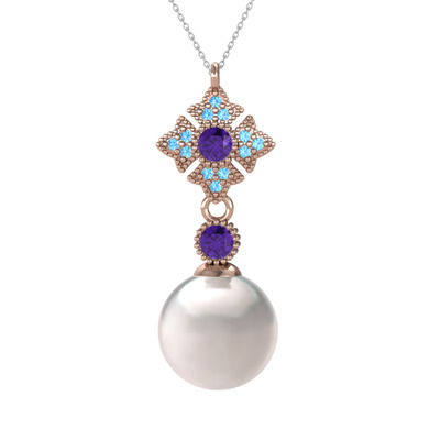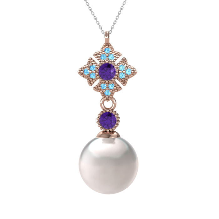 Inci, ametist ve akuamarin 14 ayar rose altın kolye (40 cm gümüş rolo zincir)