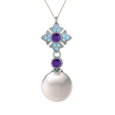 Inci, ametist ve akuamarin 925 ayar gümüş kolye (40 cm gümüş rolo zincir)