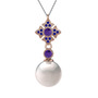 Inci, ametist ve lab safir 8 ayar rose altın kolye (40 cm gümüş rolo zincir)
