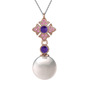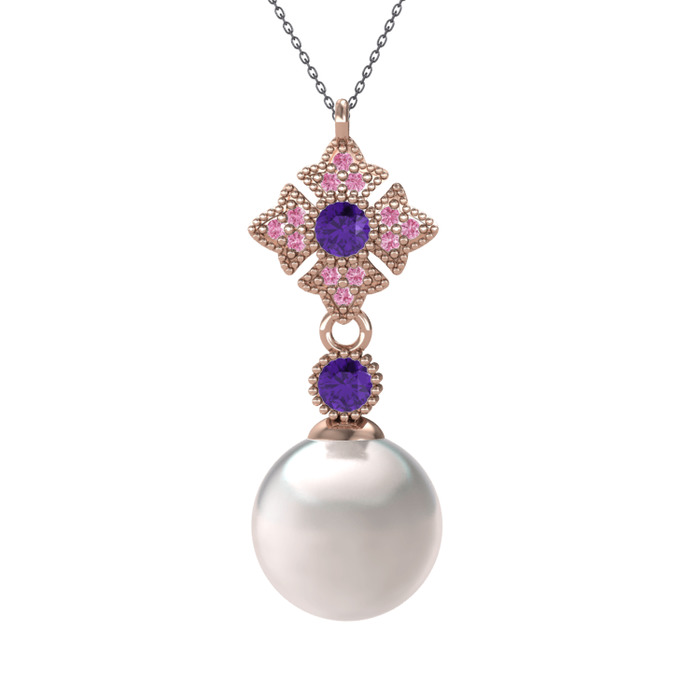 Inci, ametist ve pembe kuvars 925 ayar rose altın kaplama gümüş kolye (40 cm gümüş rolo zincir)