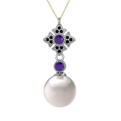 Inci, ametist ve siyah zirkon 925 ayar gümüş kolye (40 cm altın rolo zincir)