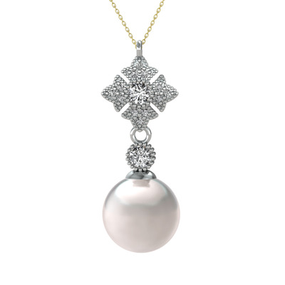 Inci ve beyaz zirkon 14 ayar beyaz altın kolye (40 cm altın rolo zincir)