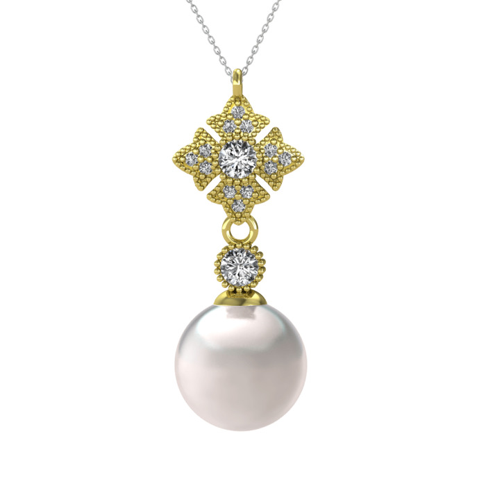 Inci ve beyaz zirkon 8 ayar altın kolye (40 cm beyaz altın rolo zincir)