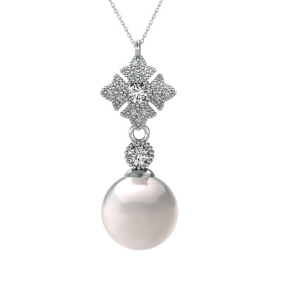 Inci ve beyaz zirkon 8 ayar beyaz altın kolye (40 cm beyaz altın rolo zincir)