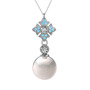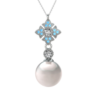 Inci, beyaz zirkon ve akuamarin 14 ayar beyaz altın kolye (40 cm beyaz altın rolo zincir)