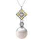 Inci, beyaz zirkon ve sitrin 8 ayar beyaz altın kolye (40 cm beyaz altın rolo zincir)