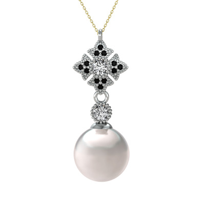 Inci, beyaz zirkon ve siyah zirkon 925 ayar gümüş kolye (40 cm altın rolo zincir)