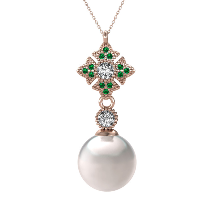 Inci, beyaz zirkon ve yeşil kuvars 925 ayar rose altın kaplama gümüş kolye (40 cm gümüş rolo zincir)