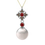 Inci, garnet ve dumanlı kuvars 8 ayar beyaz altın kolye (40 cm altın rolo zincir)