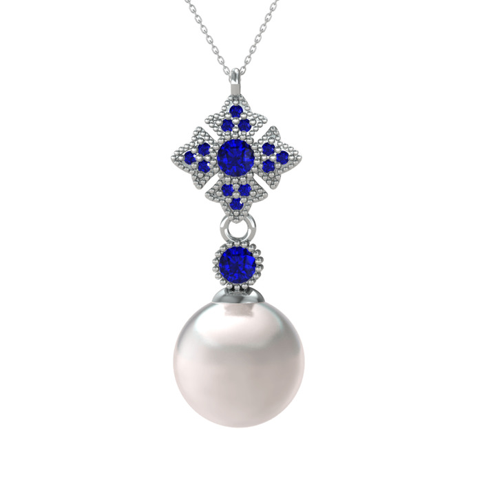 Inci ve lab safir 14 ayar beyaz altın kolye (40 cm beyaz altın rolo zincir)