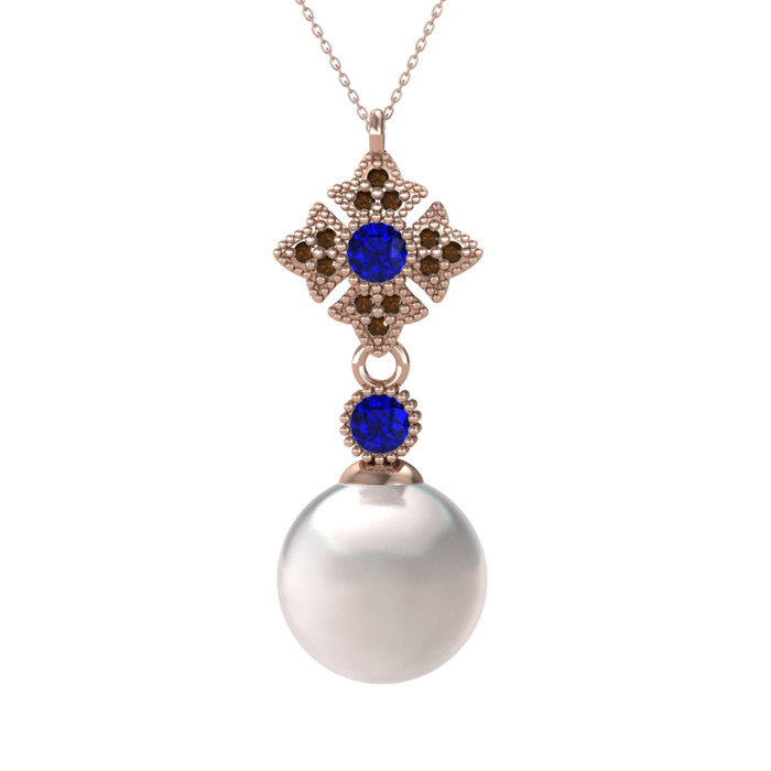 Inci, lab safir ve dumanlı kuvars 925 ayar rose altın kaplama gümüş kolye (40 cm gümüş rolo zincir)