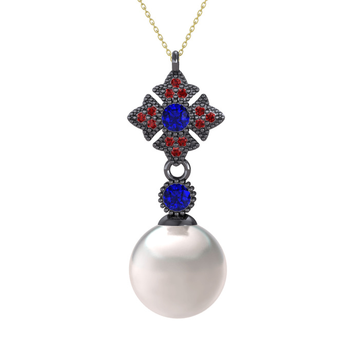 Inci, lab safir ve garnet 925 ayar siyah rodyum kaplama gümüş kolye (40 cm altın rolo zincir)