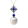 Inci ve lab safir 925 ayar gümüş kolye (40 cm altın rolo zincir)