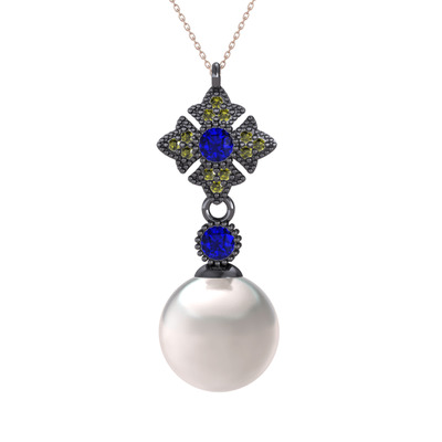 Inci, lab safir ve peridot 925 ayar siyah rodyum kaplama gümüş kolye (40 cm rose altın rolo zincir)