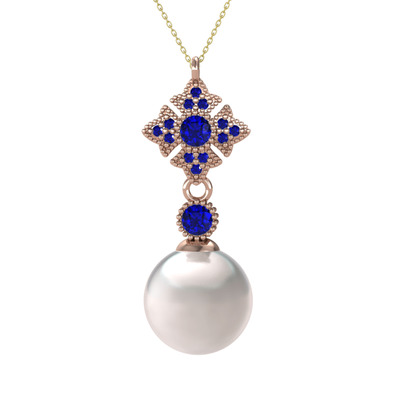 Inci ve lab safir 925 ayar rose altın kaplama gümüş kolye (40 cm altın rolo zincir)