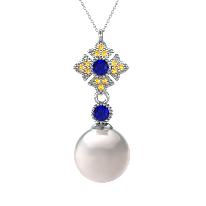 Inci, lab safir ve sitrin 8 ayar beyaz altın kolye (40 cm gümüş rolo zincir)