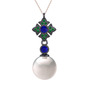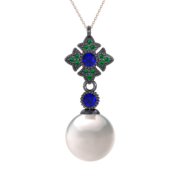Inci, lab safir ve yeşil kuvars 925 ayar siyah rodyum kaplama gümüş kolye (40 cm rose altın rolo zincir)