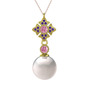 Inci, pembe kuvars ve ametist 8 ayar altın kolye (40 cm rose altın rolo zincir)