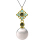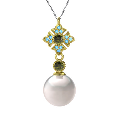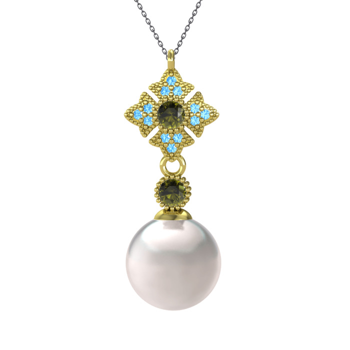 Inci, peridot ve akuamarin 14 ayar altın kolye (40 cm gümüş rolo zincir)