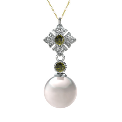 Inci, peridot ve beyaz zirkon 925 ayar gümüş kolye (40 cm altın rolo zincir)