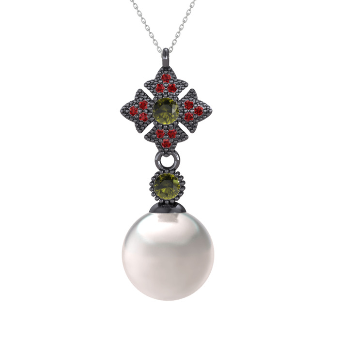 Inci, peridot ve garnet 925 ayar siyah rodyum kaplama gümüş kolye (40 cm gümüş rolo zincir)
