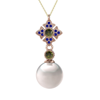 Inci, peridot ve lab safir 8 ayar rose altın kolye (40 cm altın rolo zincir)