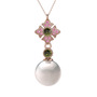 Inci, peridot ve pembe kuvars 925 ayar rose altın kaplama gümüş kolye (40 cm gümüş rolo zincir)