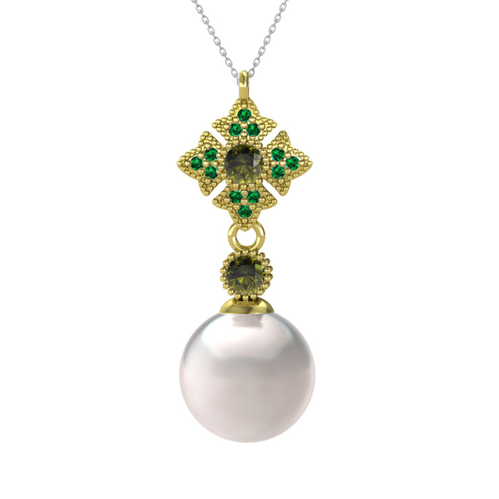 Inci, peridot ve yeşil kuvars 8 ayar altın kolye (40 cm beyaz altın rolo zincir)