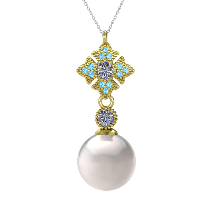 Inci, pırlanta ve akuamarin 8 ayar altın kolye (0.22 karat, 40 cm gümüş rolo zincir)