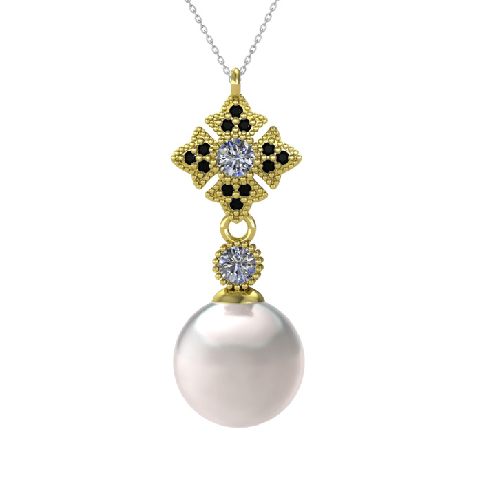 Inci, pırlanta ve siyah zirkon 925 ayar altın kaplama gümüş kolye (0.22 karat, 40 cm beyaz altın rolo zincir)
