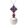 Inci, rodolit garnet ve lab safir 925 ayar siyah rodyum kaplama gümüş kolye (40 cm beyaz altın rolo zincir)