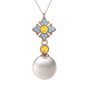 Inci, sitrin ve akuamarin 14 ayar rose altın kolye (40 cm gümüş rolo zincir)