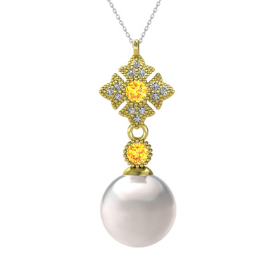 Inci, sitrin ve beyaz zirkon 8 ayar altın kolye (40 cm beyaz altın rolo zincir)