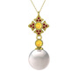 Inci, sitrin ve garnet 8 ayar altın kolye (40 cm gümüş rolo zincir)