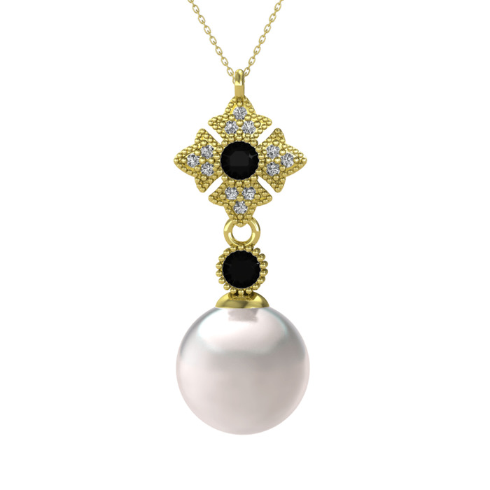 Inci, siyah zirkon ve beyaz zirkon 14 ayar altın kolye (40 cm gümüş rolo zincir)