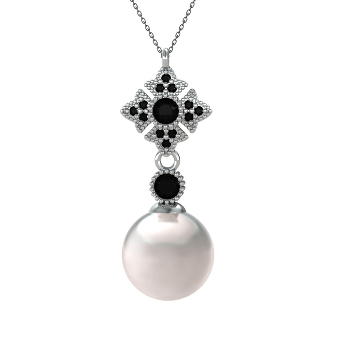 Inci ve siyah zirkon 925 ayar gümüş kolye (40 cm gümüş rolo zincir)