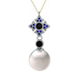 Inci, siyah zirkon ve lab safir 925 ayar gümüş kolye (40 cm altın rolo zincir)