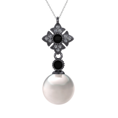 Inci, siyah zirkon ve pırlanta 925 ayar siyah rodyum kaplama gümüş kolye (0.1056 karat, 40 cm gümüş rolo zincir)