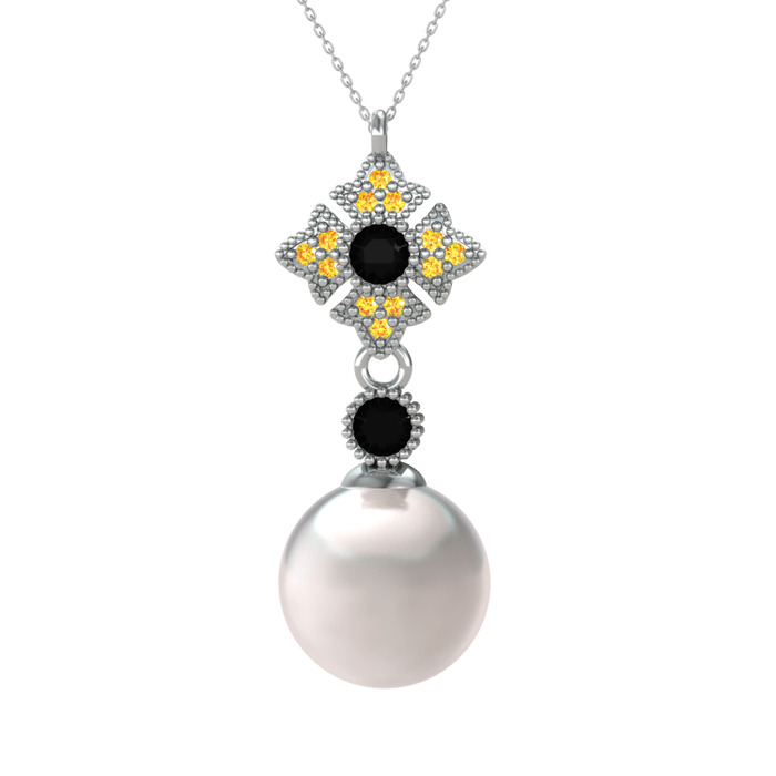 Inci, siyah zirkon ve sitrin 14 ayar beyaz altın kolye (40 cm beyaz altın rolo zincir)
