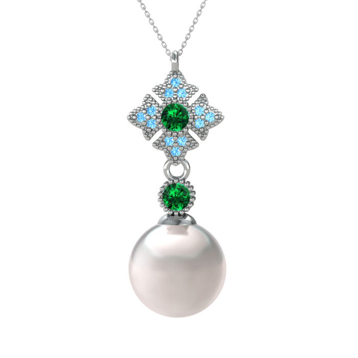 Inci, yeşil kuvars ve akuamarin 8 ayar beyaz altın kolye (40 cm beyaz altın rolo zincir)