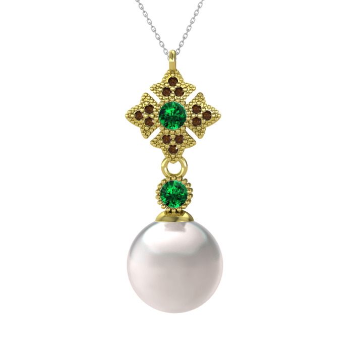 Inci, yeşil kuvars ve dumanlı kuvars 925 ayar altın kaplama gümüş kolye (40 cm beyaz altın rolo zincir)