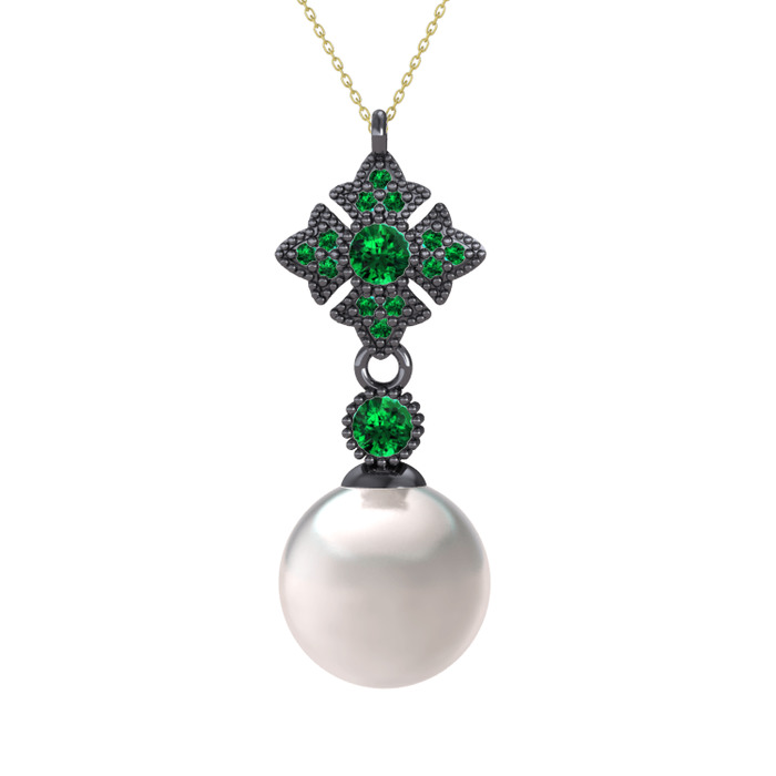 Inci ve yeşil kuvars 925 ayar siyah rodyum kaplama gümüş kolye (40 cm altın rolo zincir)