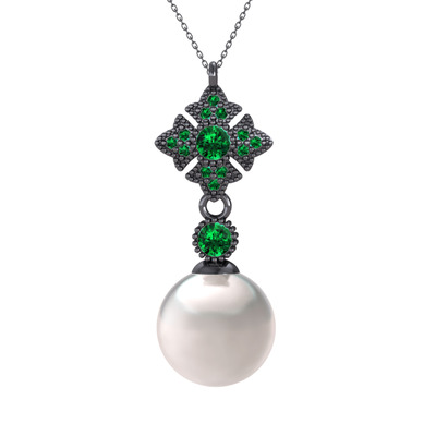 Inci ve yeşil kuvars 925 ayar siyah rodyum kaplama gümüş kolye (40 cm gümüş rolo zincir)