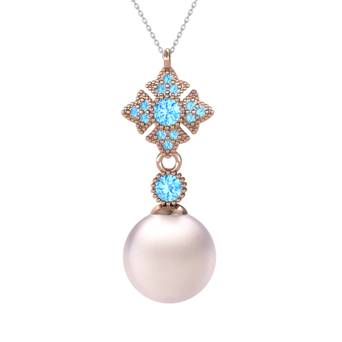 Pembe inci ve akuamarin 14 ayar rose altın kolye (40 cm beyaz altın rolo zincir)