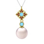 Pembe inci, akuamarin ve garnet 925 ayar altın kaplama gümüş kolye (40 cm beyaz altın rolo zincir)