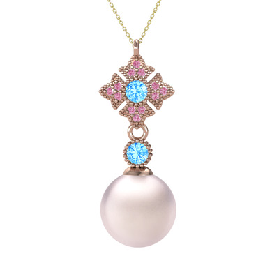 Pembe inci, akuamarin ve pembe kuvars 925 ayar rose altın kaplama gümüş kolye (40 cm altın rolo zincir)