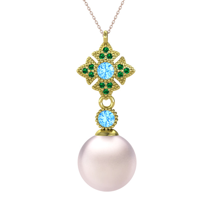 Pembe inci, akuamarin ve yeşil kuvars 925 ayar altın kaplama gümüş kolye (40 cm rose altın rolo zincir)