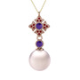 Pembe inci, ametist ve garnet 14 ayar rose altın kolye (40 cm gümüş rolo zincir)